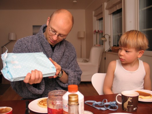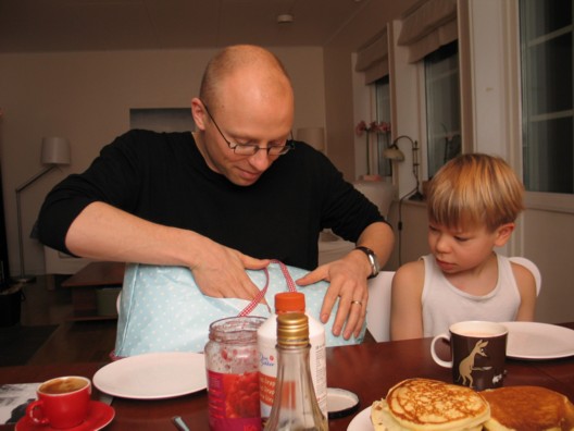 María gaf pabba sínum dvd disk með öllu því besta frá Björn Gustavsson, m.a. brot úr Melodifestivalen, Parlamentet, Morgonsoffan og fleiri skemmtilegum þáttum.