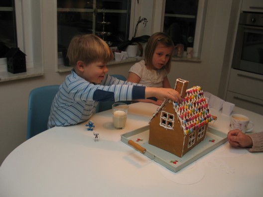 Og eftir jólahlaðborðið var loksins, loksins gefið grænt ljós á piparkökuhúsið!