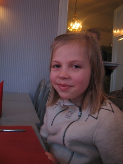 María var ánægð með tónleikana þótt hún setji hér upp þennan stúrna svip. Kannski hún hafi verið svona súr yfir að pabbi hennar skyldi senda hana ógreidda á tónleika?! Mamman var nefnilega sjálf að lussa og gat því ekki haft yfirumsjón með svona málum eins og vanalega!