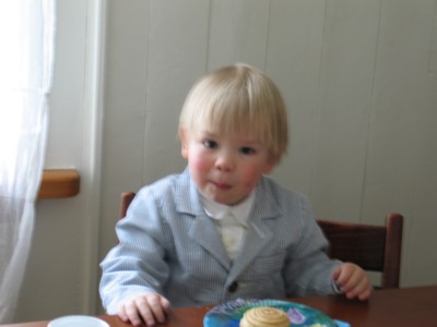 Hugi sestur aftur við kökuborðið og tilbúinn í seinni lotu!!!