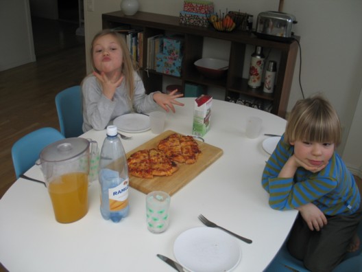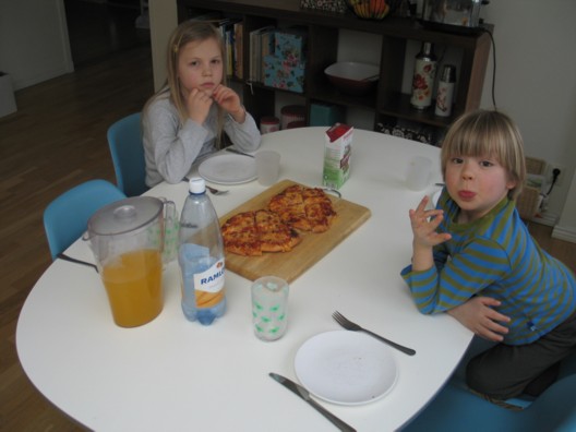 Pizzurnar komnar á borðið og systkinin í kjánastuði!