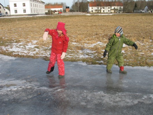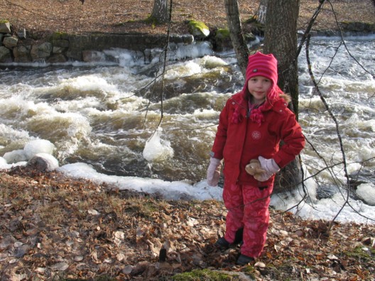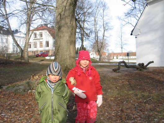 Um miðjan febrúar fór ég með nýja kórnum mínum í æfingabúðir til Gysinge sem er í um það bil klukkutíma akstursfjarlægð frá Uppsölum. Ég gat hins vegar bara tekið þátt fyrri daginn þar sem Einar var á vakt á sunnudeginum og eftir miklar bollaleggingar og mikið vesen var ákveðið að Einar, María og Hugi kæmu bara með, skoðuðu sig um í sveitinni meðan ég syngi raddböndin í hnút og sæju svo um að ferja mig heim um kvöldið. Þetta reyndist þegar allt kom til alls ekki alvitlaus ráðstöfun því þremenningarnir skemmtu sér hið besta í ferðinni, rannsökuðu umhverfið vel og vandlega og komust að þeirri niðurstöðu að við þyrftum að skreppa til Gysinge aftur að sumarlagi! Hér er María við gömlu mylluna með kanínuna Helínu undir arminum.