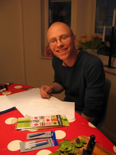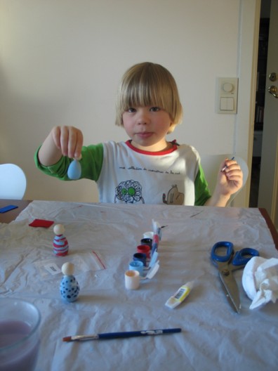 Vikuna 18. - 22. febrúar voru María og Hugi í fríi frá skóla og leikskóla vegna hins svokallaða sportlovs. Engar íþróttir voru þó iðkaðar hér á Konsulentvägen en þeim mun meira föndrað, dundað og dútlað! Hér er Hugi til dæmis að mála sjóræningja. (Mér þykir rétt að taka það fram að hann fór í klippingu þennan sama dag!)