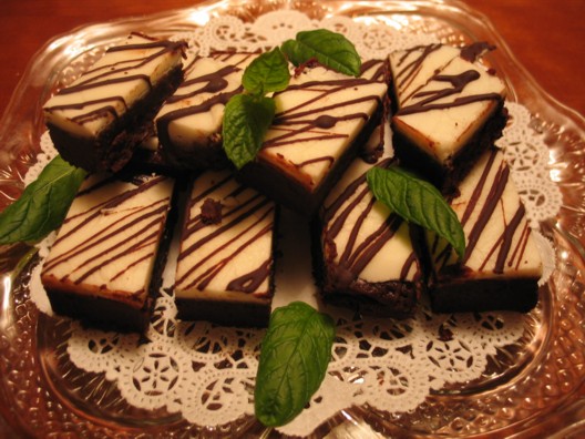 Við Einar bökuðum ægilega fínar myntu-súkkulaðisnittur um daginn sem ég var hrikalega stolt af. En á þessari mynd virðast þær einhvern veginn bara voða skítugar og klessulegar! (Kannski af því að ég nennti ekki heldur þarna að fara upp að sækja flassið!) En góðar voru þær!