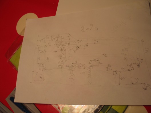 Þarna sjáið þið garðinn okkar skýrt og greinilega! Nei, grín ... þetta er bara blaðið sem hann páraði allar tölurnar inn á en ekki teikningin sjálf. Ég á reyndar enga mynd af henni ... í staðinn fáið þið bara að sjá myndir af garðinum þegar þetta verður allt tilbúið! (Hvenær sem það nú verður?!)