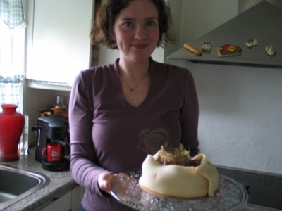 Við urðum okkur að sjálfsögðu út um brúðartertuna og sýndum mikla fyrirhyggju með því að panta hana með löngum fyrirvara!Þær eru glæsilegar báðar tvær, tertan og Svanhildur!