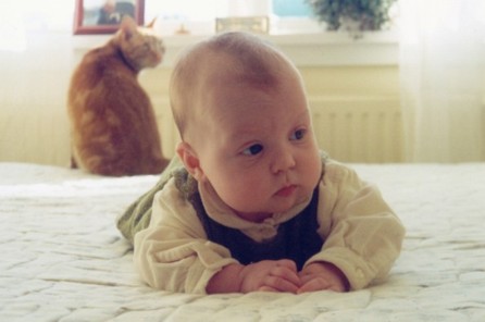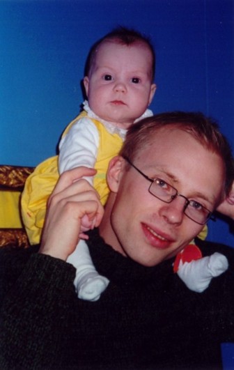 Rétt tæplega eins árs gömul María reynir að skýla sér fyrir vorsólinni árið 2001.
