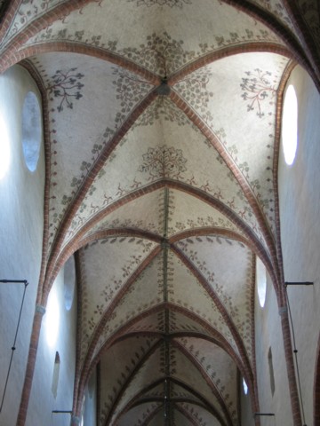 Á leið okkar niður í miðbæinn rákumst við inn í aðra kirkju sem er mun eldri en dómkirkjan. Loftið í henni var ekki síður fallegt ...