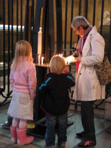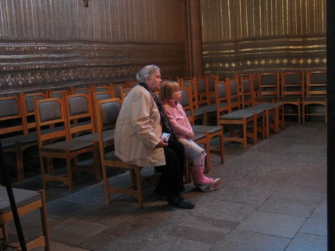 Amma Guðrún og María settust inn í eina af litlu kapellunum og virtu fyrir sér listaverk sem María kaus að kalla Englahúsið hans Guðs!