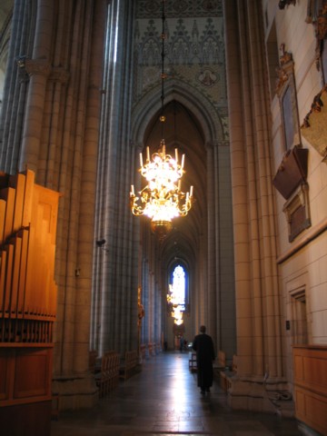 Prestur á þönum eftir kirkjuskipinu! Eins og mér finnst þessi kirkja falleg þá á ég alltaf pínulítið erfitt með að koma þangað því kórsöknuðurinn hellist yfir mig eins og alda í hvert skipti. Einu sinni þegar ég ráfaði þarna inn var einhver að æfa sig á orgelið og þá gat ég ekki annað en hugsað um kirkjuna mína, alla fallegu tónlistina og Mótettukórinn minn og langaði mig mest að fara að gráta! Ég sakna ykkar!!!!
