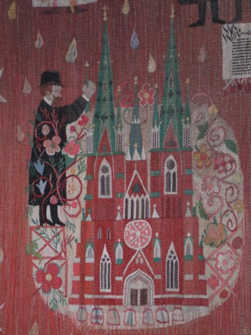 Þetta er hluti af uppáhaldslistaverkinu mínu í kirkjunni, veggteppi sem segir sögu kirkjunnar í nokkrum myndum. Við María höfum nefnilega báðar erft hannyrða-áhugann frá ömmunum!
