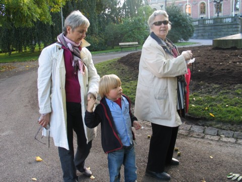 Dagarnir 12. - 15. október voru sannkallaðir ömmudagar hér á Konsulentvägen! Þá voru hér hjá okkur tvær ömmur, Imba amma og amma á Sóló. Mæðgurnar komu til okkar seint á fimmtudagskvöldi og fóru þremur sólarhringum síðar eftir ótrúlega skemmtilega dvöl eins og sjá má á eftirfarandi myndum: