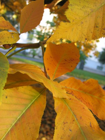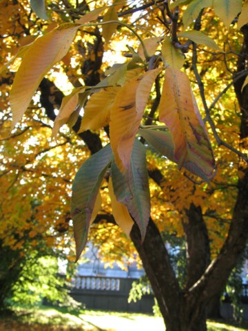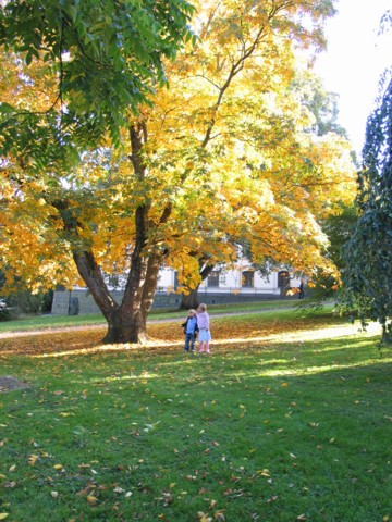 Í háskólagarðinum var eitt stórt og fallegt tré orðið næstum alveg gult ... svo ótrúlega fallegt! Þau eru líka falleg þessi börn sem standa undir því!