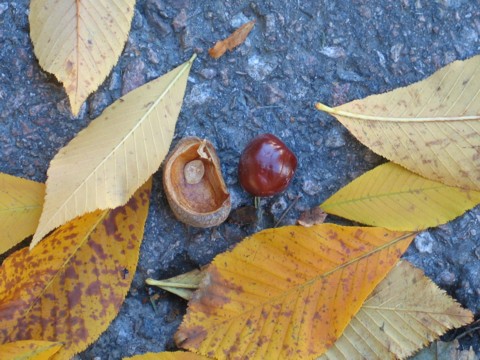 ... meðan María og amma á Sóló tíndu hnetur og lauf í náttúrudýrgripasafn þeirrar fyrrnefndu.