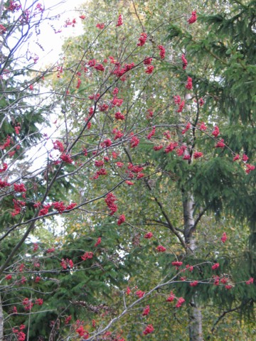 Mér finnst ógurlega fallegt hvernig berjaklasarnir ríghalda sér enn í greinar reynitrjánna þrátt fyrir að öll laufblöð hafi fyrir löngu sleppt takinu.