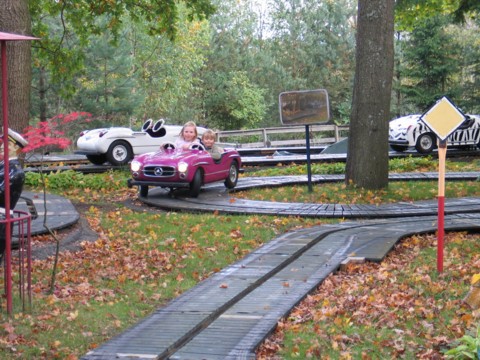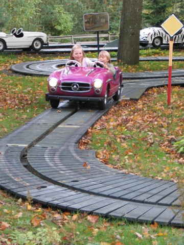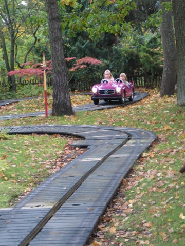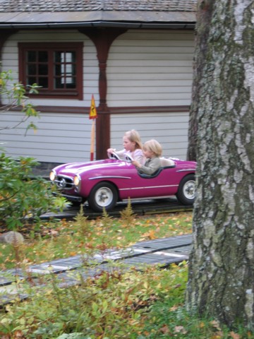Efst á hæðinni sem Skansen stendur á eru nokkur leiktæki, meðal annars þessi fína bílabraut sem systkinin fengu auðvitað að prófa. Við hin hlógum og hlógum því það var svo ótrúlega krúttlegt að fylgjast með þeim svona mannalegum á fleygiferð í pínulitlum bílnum!