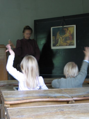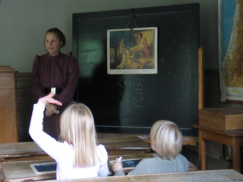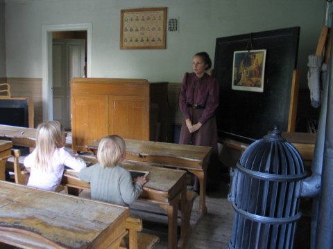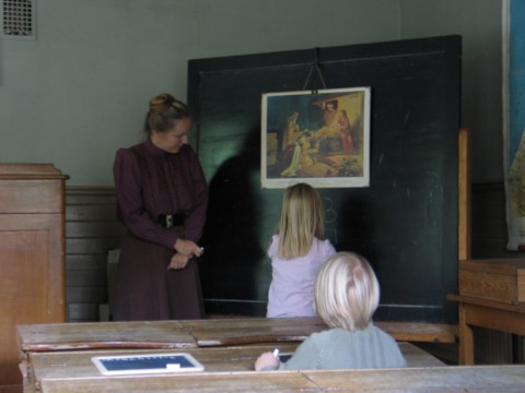 Þótt Skansinn sé opinn allan ársins hring er starfsemin takmörkuð yfir vetrartímann. Það var þó opið í skólahúsinu og þetta ímynda ég mér að gæti verið skrifstofa skólastjórans.