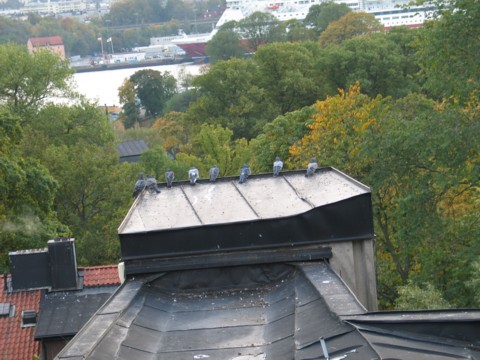 Á Skansinum er frábært útsýni yfir Stokkhólm sem þessar dúfur nutu til hins ítrasta.