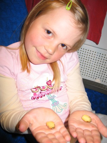 Eftir Skansinn skoðuðum við okkur um í Gamla Stan og fórum út að borða. Á leiðinni heim í lestinni dunduðum við María okkur við að rannsaka hnetur sem hún hafði tínt yfir daginn og stungið í vasann (það sem þetta barn treður ekki í vasana!).