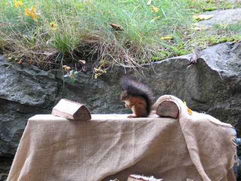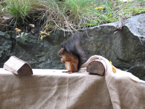 Fyrir utan bakaríið var þessi ótrúlega sæti íkorni!