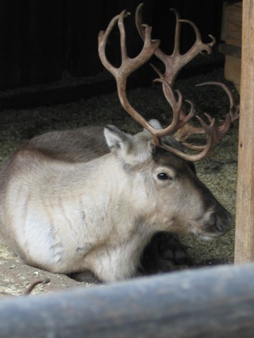 María og Hugi trylltust af gleði þegar við komum í dýragarðshlutann! Við byrjuðum á hreindýrunum.