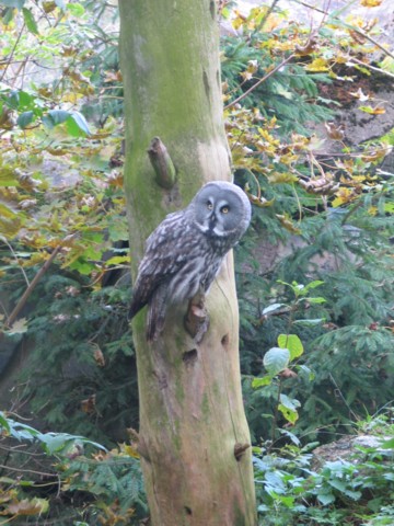Þessi ugla var voðalega undarleg. Hún var algjör hlunkur og andlitið á henni var svo ótrúlega skringilegt og flatt. Það var næstum eins og hnakkinn á henni og vængirnir mynduðu kufl og stóra hettu utan um hana. En hún var ótrúlega flott, fylgdist haukfránum augum og grafkyrr með íkornunum sem skoppuðu fyrir neðan. Mér hafa alltaf þótt uglur svo æðislegar og krúttlegar en þessi var eiginlega frekar óhugnaleg en um leið ótrúlega falleg.