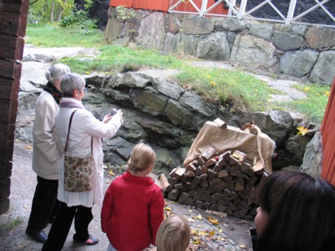 Á laugardeginum tókum við lestina inn til Stokkhólms og fórum á Skansen, eins konar Árbæjarsafn Svía og eitt af fyrstu útisöfnum í heimi. Svæðinu er í raun skipt upp í þrjá hluta, bæjarhlutann þar sem búið er að endurgera lítinn kaupstað með bakaríi, smíðaverkstæði, glerverkstæði og fleiru; dýragarð með norrænum dýrum og svo sveitahluta þar sem búið er að endurreisa gamalt sveitaþorp með bæjum, kirkju, skóla og fleiru. Hér eru fjórar kynslóðir í beinan kvenlegg ásamt einum litlum Huga fyrir utan bakaríið í bæjarhlutanum og ég er með nýbakaðar kanilbulla og annað kruðerí í bréfpoka!