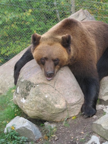 Þessi skógarbjörn var að leita sér að góðum stað til að fá sér blund á ... og fann sem betur fer þennan þægilega stein að halla höfðinu á!