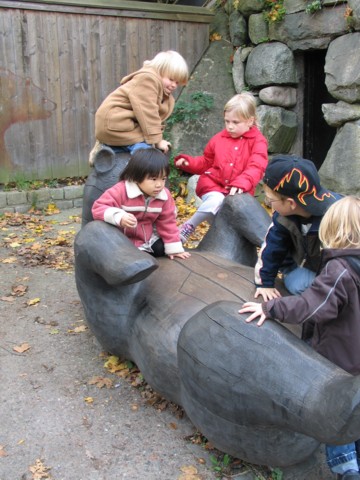 Við bjarnagryfjuna var líka svona stór og skemmtilegur trébangsi sem leyfir öllum krökkum að príla á sér.