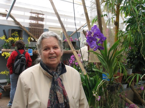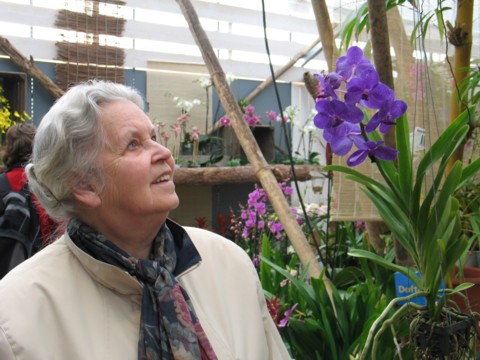 Á sunnudeginum skelltum við kellurnar okkur þrjár saman á orkideusýningu í gróðrarstöð í Uppsölum. Amma var alveg heilluð af úrvalinu og fannst agalegt að geta engar tekið með sér heim! Hér er hún með einni fjólublárri sem henni fannst svo falleg.