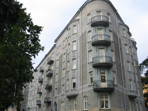 Eitt af því sem mér finnst svo skemmtilegt við umhverfið hérna er að á hverju strái eru virkilega falleg fjölbýlishús og þetta ljósbláa er í sérstöku uppáhaldi hjá mér!