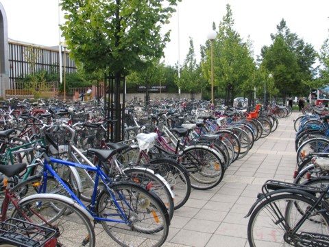 Í Uppsölum eru allir á hjólum. Ég veit að hugmyndin um hjól loðir í hugum okkar Íslendinga við Norðurlöndin almennt enda fólk í Skandinavíu mun duglegra að hjóla en við. Ég get hins vegar alveg lofað ykkur því að í Uppsölum er mun meira hjólað en almennt gengur og gerist enda hjólreiðar algjörlega samofnar ímynd borgarinnar. Þessi mynd er tekin fyrir utan Ekonomikum, eina af háskólabyggingunum. Það er rétt að taka það fram að þetta er aðeins eitt af fjölmörgum hjólreiðastæðum við bygginguna!