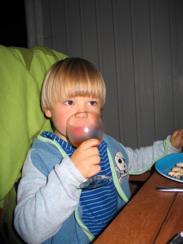 ... og ekki þótti þeim síðra að fá að drekka úr glösum á fæti en slíkt er ævinlega mikið sport!