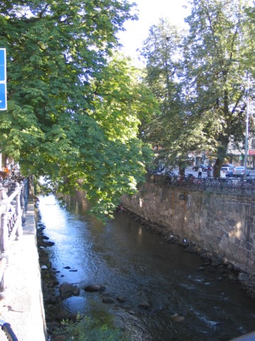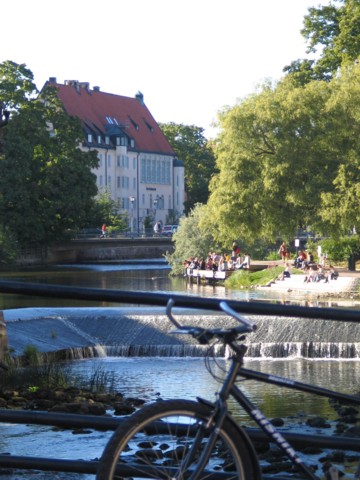 Fyrisån sem rennur í gegnum miðbæ Uppsala ... takið eftr hjólunum handan við ánna!