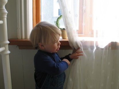 Það tókst loksins að klippa drenginn þó það hafi reyndar kostað töluverðan grát og gífurlega sorg! Það liggur við að öll fjölskyldan þurfi að fá áfallahjálp eftir heimsókn á hárgreiðslustofuna með Huga!