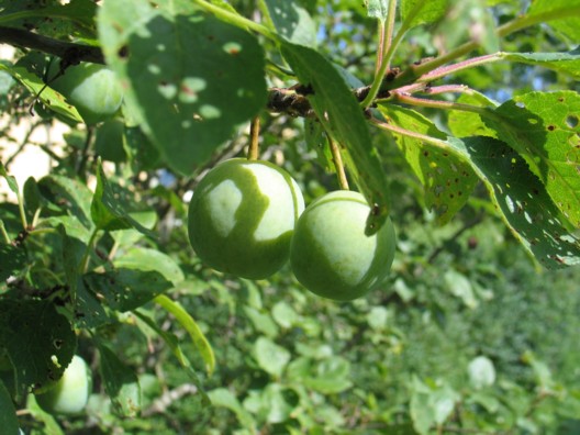 Og það stefnir í metuppskeru á plómum! Fyrsta sumarið okkar hér fengum við eina plómu, svona 5 það næsta og kannski 10 í fyrra en nú eru áreiðanlega 200 plómur á góðri leið með að verða fullþroska! Í fyrra nýtti ég uppskeruna í eina plómuböku, nú verð ég annað hvort að baka 20 plómubökur eða finna upp á einhverju nýju!