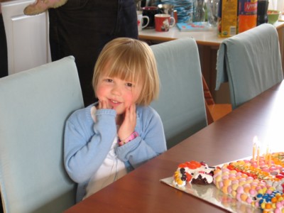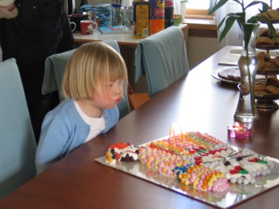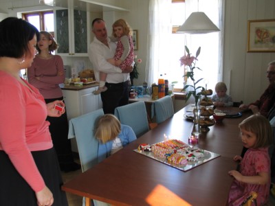 Afmælisveisla Maríu var haldin þann 25. apríl og var mikið um dýrðir á Bárugötunni. Hæst bar að sjálfsögðu afmælistertan sem var glæsileg að vanda, gerð af Jódísi frænku sem í þetta sinn naut fulltingis Imbu ömmu á Bakkastöðum. María fékk alveg fullt af fallegum gjöfum og var auðvitað ánægð með þær allar.