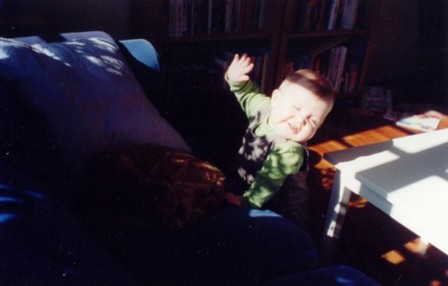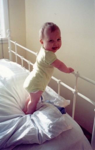 Rétt tæplega eins árs gömul María reynir að skýla sér fyrir vorsólinni árið 2001.