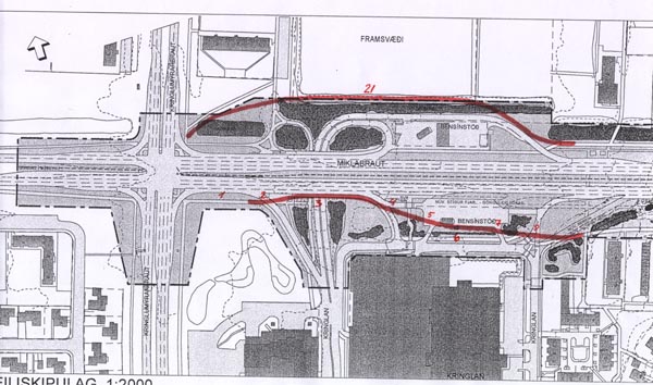 stefnu að akrein sem liggur frá Kringluni inn á Miklubraut.