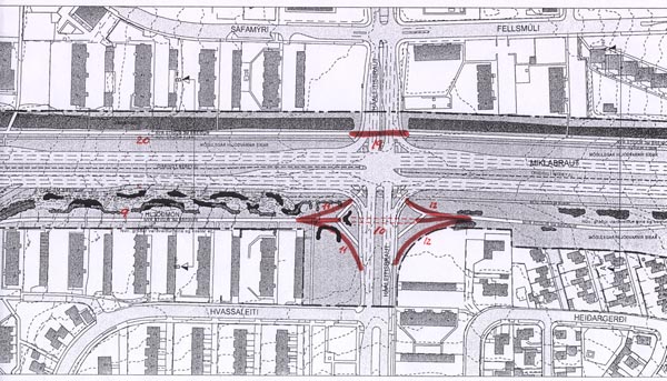 hana og framhjá umferðaslaufuni að kringluni. Þannig