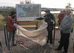 afhjúpað með viðhöfn. Er það staðsett við vesturenda göngubrúarinnar yfir