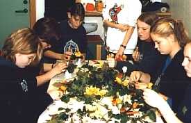 The Program will be a combination of many things. Participants will be chatting on the Internet and talking to scouts in other countries by ham-radio stations. They will also visit old folk homes and handicapped children, where they will sing and perform skits for them. Early Saturday morning, they will work in hobby project groups, making gifts to take along to give to the homes and institutes they visit that afternoon. After BBQ-dinner, there will be a major indoor-campfire, where parents as well as general public of the town can come and participate in. At last, we will have the night-game, the popular team against team games.
